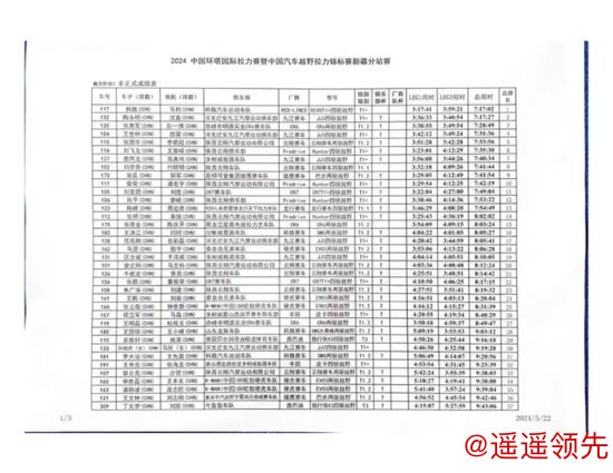 2024中国环塔国际拉力赛暨中国汽车越野拉力锦标赛(CCR)新疆分站赛于5月22日结束了第二赛段(SS2)的比拼,韩魏汽车运动车队117号车手韩魏(领航:马利)再次成为首个抵达终点的车手,河北迁安九江汽摩运动俱乐部132号车手陶永明(领航:沈鑫)第八位发车,第二个冲过终点线,并以3小时40分54夺得赛段冠军。陕西云翔俱乐部116号车手刘飞龙(领航:王曾嵘)紧随陶永明之后顺利完成了当天的比赛。